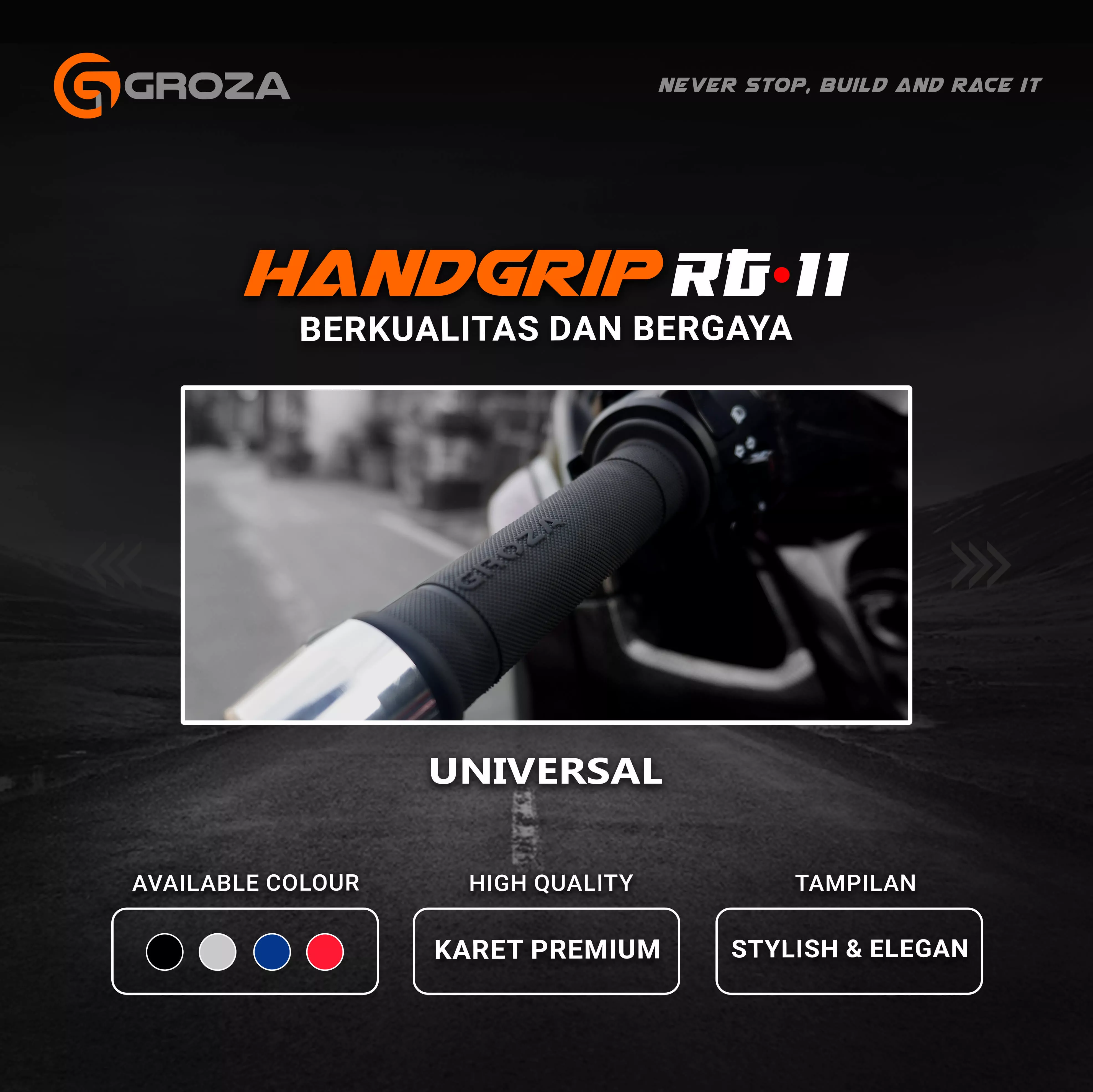Handgrip Universal RG-11 dari Groza, Siap tingkatkan penampilan motor kamu, dengan desain yang simple dan stylish, juga warnanya yang beragam!