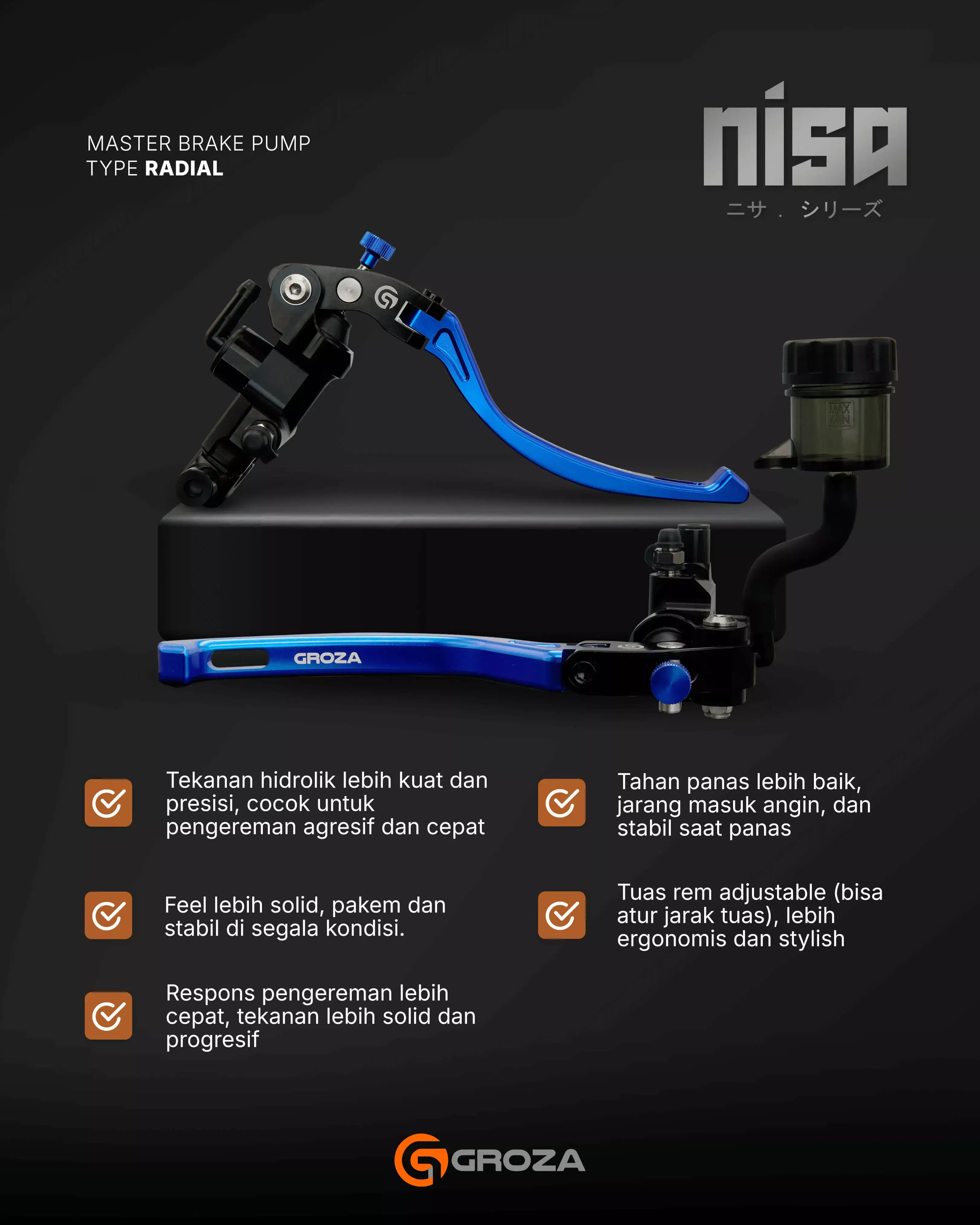 Master Rem Nisa adalah pilihan tepat untuk pengendara yang mengutamakan respon cepat dan tampilan yang menonjol. Dengan kombinasi fungsionalitas dan desain, Nisa siap memberikan upgrade signifikan pada sistem pengereman Anda.