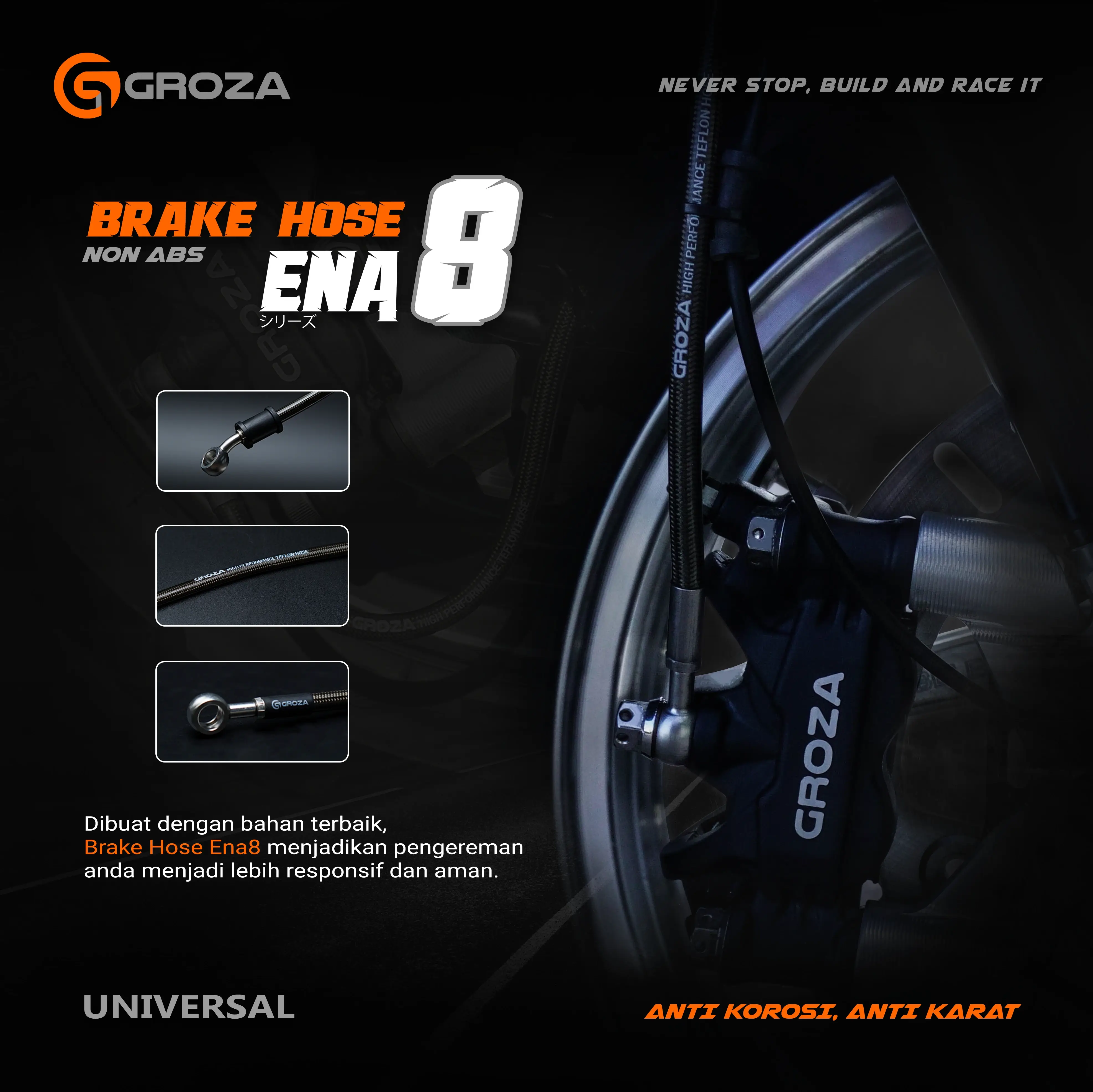 Selang Rem Groza Ena8 Siap tingkatin performa pengereman kamu jadi lebih konsisten!